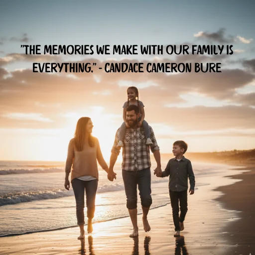 Use quotes like ‘Family memories are treasures stored in the heart forever’ to celebrate family and love.